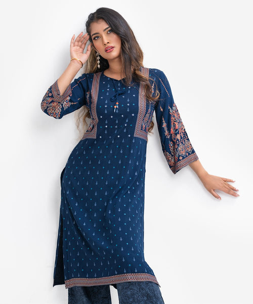 Blue Viscose Straight Kameez